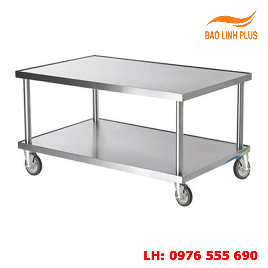 Bàn Inox Có Bánh Xe thường được dùng làm bàn trung gian để gia vị, sơ chế rau củ quả, để thức ăn, bát đĩa… trong các khu bếp công nghiệp, nhà hàng, khách sạn. Tầng phẳng phía dưới có thể linh động để xoong, chảo…, hạn chế nước văng từ dưới lên trong lúc chế biến.