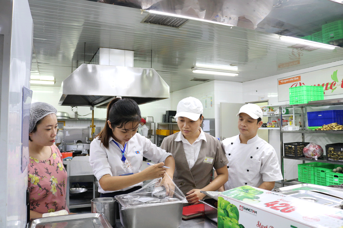 Vì phải phục vụ 3 bữa/1 ngày, nên khu bếp xây dựng lên cần tối ưu được thời gian nấu ăn, các thiết bị nhà bếp cũng cần phải vệ sinh sạch sẽ và nhanh chóng để phục vụ các ca ăn theo thời gian quy định. Vì vậy, Bảo Linh Plus đã đưa ra phương án sử dụng tủ nấu cơm công nghiệp 24 khay, tủ xấy khay, tủ xấy tạp dề, tủ xấy cốc,…